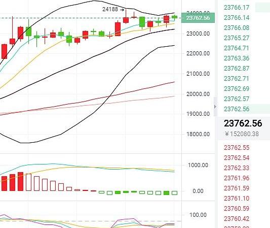 所以綜合來看,行情的大趨勢看漲,這一點沒有異議,行情短線回調下方23500-23300附近的位置可以進行多單的進場,上方的目標壓力位在23900-24000一線,目前的行情就是一個順勢而為的操作就好,等新的空間再一次的打開!