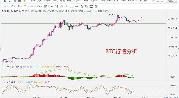 1900/1/1 0:00:00BTC行情分析: 比特幣自日內凌晨刷新高點之后,走出1500余點的下行,低位觸及23100位置后止跌隨后反彈,價格不斷震蕩上行,于晚點四點觸及24100位置后再次被打破.