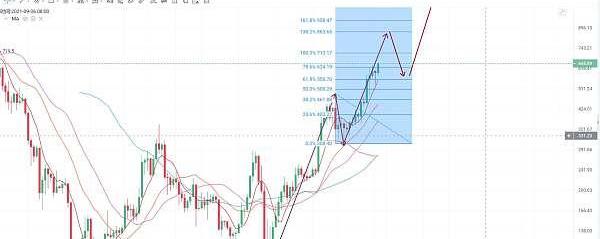 如果通過波浪理論來計算ETH的走勢,下個壓力位應該在710美金,在往上就是860與950美金,至于具體能到什么高度還有待觀察。