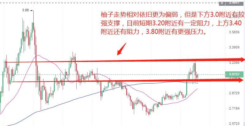 EOS(4小時走勢圖):EOS行情走勢相對更為偏弱,目前行情連續在3.0附近企穩,3.0附近有較強支撐,上方短期3.0附近存在一定阻力,上方3.40附近還有阻力,整體3.80附近有更強阻力壓制。短期來看上方阻力重重,行情很難出現暴漲,但是行情企穩后繼續向上概率依舊較大。操作上依托支撐做多為主。
