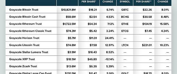 根據官方披露,灰度還擁有萊特幣,比特幣現金,以太坊經典以及其他持有量較少的信托,包括XRP,恒星流明和zcash。