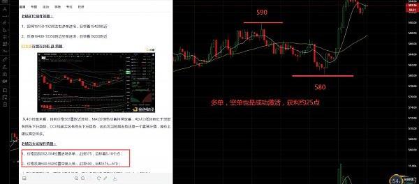 2、價格回踩590-592位置多單入場,止損585,目標看10-15個點;