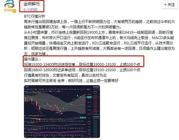 反彈19300-19400附近進場空單,目標位置19000-19100,止損100個點