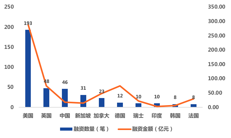 (二)地域分布:美國遙遙領先,中國融資金額僅占全球2.28%