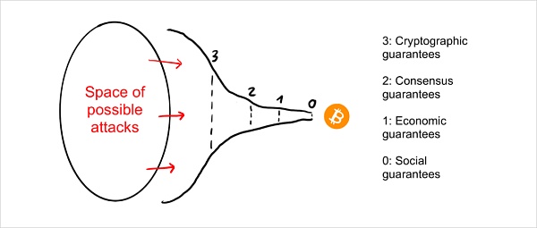要想永遠摧毀一條公鏈,必須摧毀用戶對其賬本狀態(所有權清單)的信任,還要讓這條公鏈無法可靠地更新賬本狀態。外面幾個安全層都是為了防止這種情況發生。