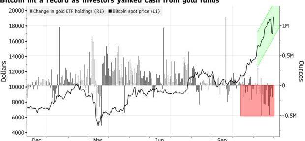 摩根大通分析師表示,家族辦公室等基金正在出售黃金ETF,轉向持有數字貨幣。支持黃金ETF的金條數量已經減少了93噸,價值約50億美元。相比之下,自8月初以來,機構投資者首選的灰度比特幣信托美元市值已翻了一番。