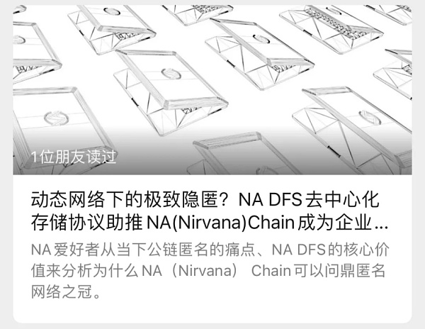 NA(Nirvana)Chain社區愛好者撰寫的《動態網絡下的極致隱匿?NA DFS去中心化存儲協議助推NA Chain成為企業級隱私網絡》為大家詳細解讀了NA DFS。獲得金色財經首頁報道、投資金融網、中華網等11家媒體的報道。