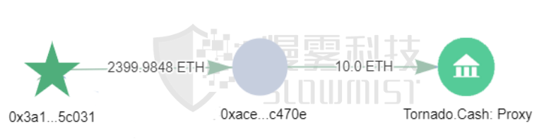該獲利地址 (0xace...70e) 只有一筆轉出記錄:通過 Tornado Cash 轉出 10 ETH。