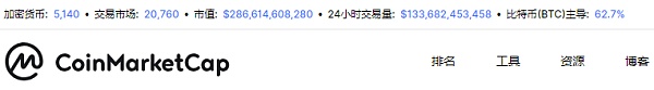 行情 | BTC24小時成交額為56.23億美元 占比為30.17%:據Tokenview.com數據顯示,24小時成交額排行中成交額排名如下: 第一是BTC,其24小時成交額為56.23億美元,占比為30.17%; 第二是USDT,其24小時成交額為47.42億美元,占比為25.44%; 第三是ETH,其24小時成交額為31.85億美元,占比為17.09%; 第四是EOS,其24小時成交額為9.26億美元,占比為4.97%; 第五的是XRP,其24小時成交額為7.75億美元,占比為4.16%。[2018/12/29]