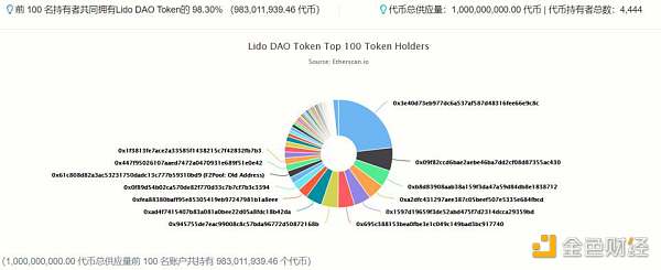 從表 4-1 和上圖中,我們可看到,在前 100 名地址中,機構的持有占比并不大,相比之下,只有 15%,Token Millionaire 和 Heavy Dex Trader,即大戶的持有量更高,兩者累計持有 235,311,418。除了 Lido 官方外,大戶的持有占比最大,這意味著當前 LDO 的數量主要集中在大戶手上,機構占比較小,散戶更少。