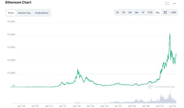 但是如果以美元價值來看,這些地址資產價格提升的幅度很大。參考 CoinMarketCap 上 ETH 在 2015 年 8 月 7 日的開盤價格 2.83 美元,六年前 7200 萬 ETH 的總價值為 2 億美元;但是按照 ETH 目前的 2500 美元的價格計算,309 萬 ETH 的總價值超過 77 億美元,是六年前的近 40 倍,而在不久前以太坊創出 4300 美元歷史高點時,這一增幅更加可觀。