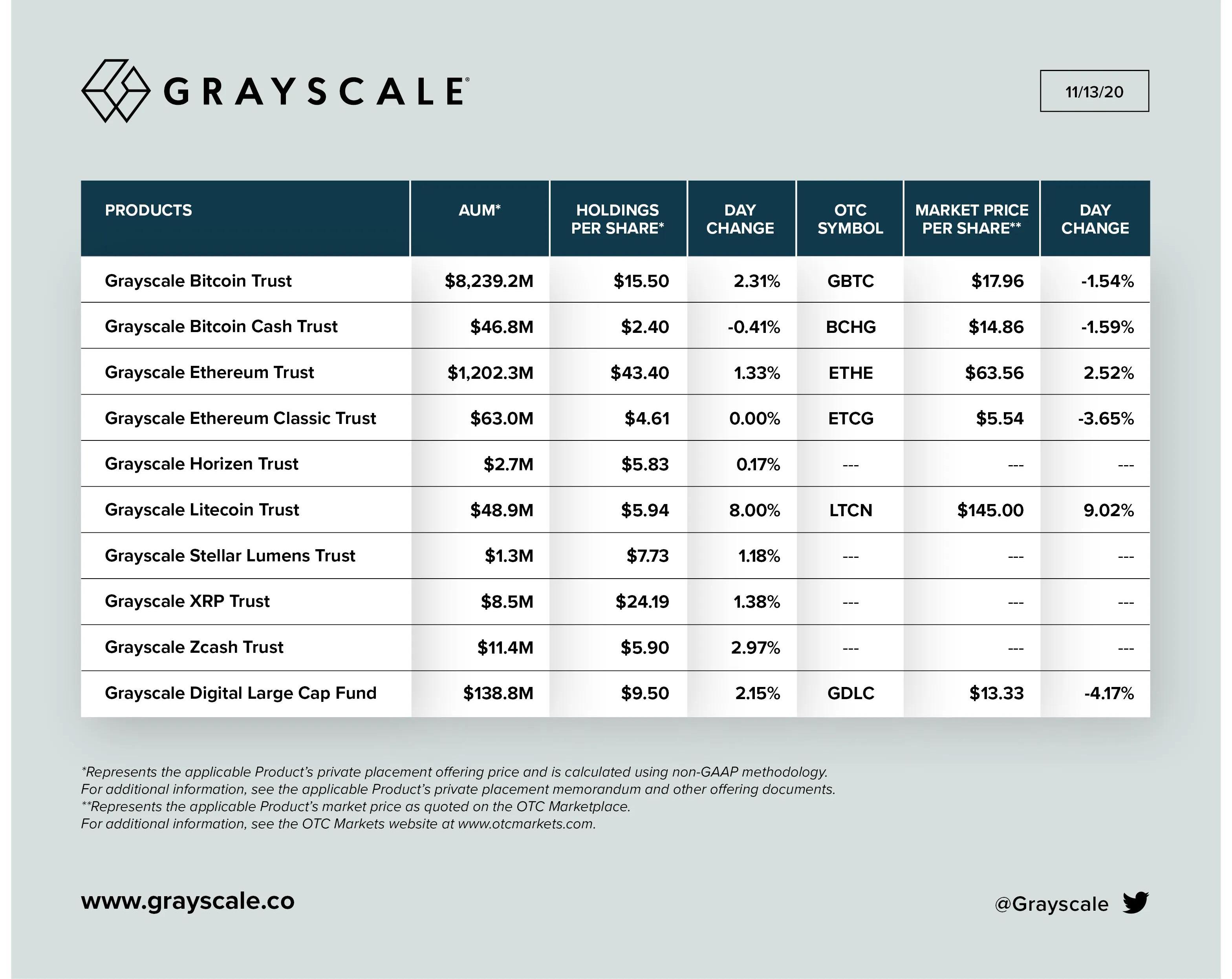 但更重要的是,該公司管理的灰度比特幣信托一直是增長最快的投資產品。GrayscaleBitcoinTrust的平均每周吸引投資為3950萬美元,該信托在2020年第三季度的流入量為7.193億美元,增長了1500%。年初至今,AUM飆升了147%。
