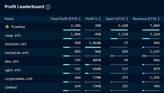 資本主義方面是最明顯的方面。該領域的許多人會購買 NFT,希望快速上漲。只需看看 Nansen 的利潤排行榜,你就會看到 NFT 大戶的盈利