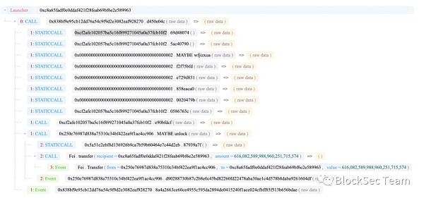 BlockSec團隊首先從以太坊的攻擊交易入手,這源于我們已經有一個比較好的交易trace分析系統(https://tx.blocksecteam.com),能用可視化的方式將函數調用過程恢復。