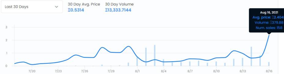 圖 10 Parallel 過去 30 天二級市場銷售歷史,數據統計時間為 2021 年 8 月 16 日