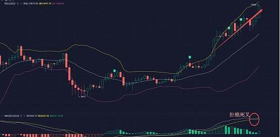 ???日線上,比特幣近期一直沿著布林帶上軌上行,盤面十分的強勢。上一篇文章寫的警惕出現頂分型頂部形態確立,結果頂分型形態出現之后,第二天又拉上去,破了這個組合形態結構,導致了頂部構造失敗,并且日線上MACD指標拒絕了死叉,可以從這里看出來盤面真的十分的強勢,建議各位審慎做空。近期,我覺得要是比特幣能繼續拉升,可能14750USD這個位置是一個短期的高點,這只是個人觀點。日線上,比特幣壓力位為14600/14560USD,支撐位為13900。操作建議上,建議持有比特幣現貨,合約上觀望為主,太看不懂了。