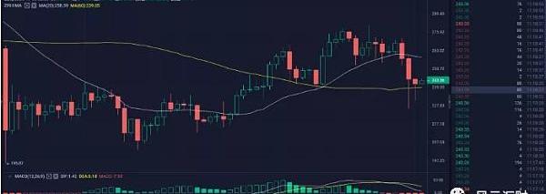 在BCH日線級別,多頭站上60日均線關鍵位,長期趨勢走強,今日重點關注多頭是否能站上關鍵位244.20,站上的話,日內多頭會相對強勢。在MACD上,快線下穿慢線,紅色量柱持續拉長,空頭主力蓄勢進攻。