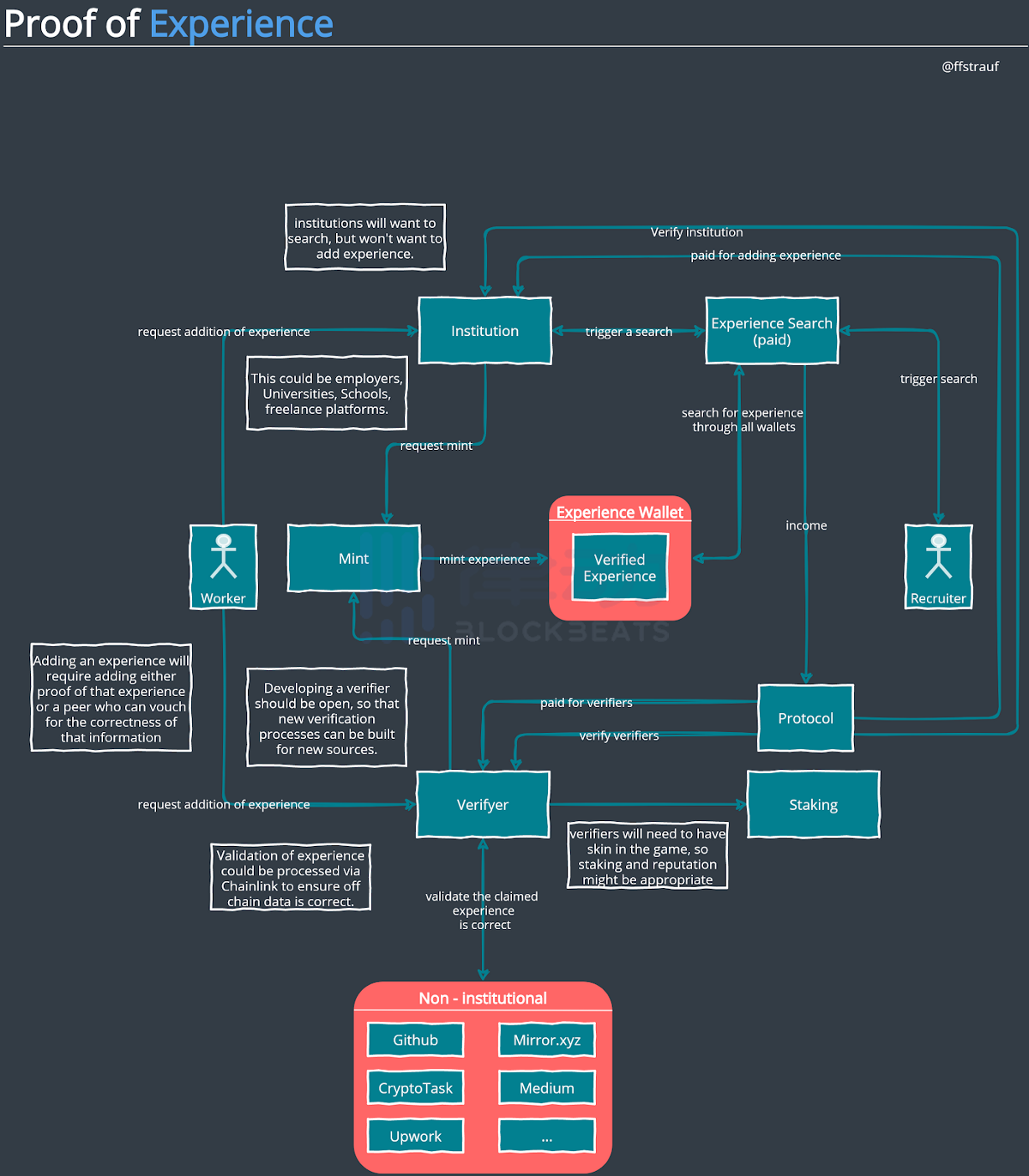 雖說驗證相關人士的經驗對于機構來說并不會引發任何成本,但在沒有適當的激勵情況下,機構不會積極響應和采納此方式。因此,協議可以為提供驗證經驗服務的機構獎勵協議原生代幣,這樣可能也會激發對不同種類經驗的探索。