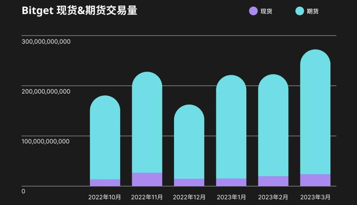 Bitget?不斷為市場和用戶帶來更多的流動性,?2023?年第一季度,現貨和合約市場的交易量分別達到?590?億美元和?6580?億美元。其中,Bitget?現貨交易環比增長?8%?,BitgetU本位合約、Bitget?USDC?合約和Bitget幣本位合約的總計交易量環比增長?27%?。根據?TokenInsight?的報告,Bitget?是?2023?第一季度綜合交易量排名第?4?的中心化交易所。