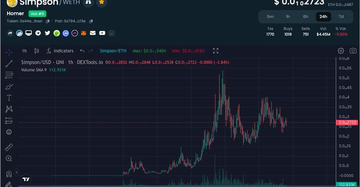 Simpson代幣創建者將初始代幣約1/3部署了Uniswap流動性池。