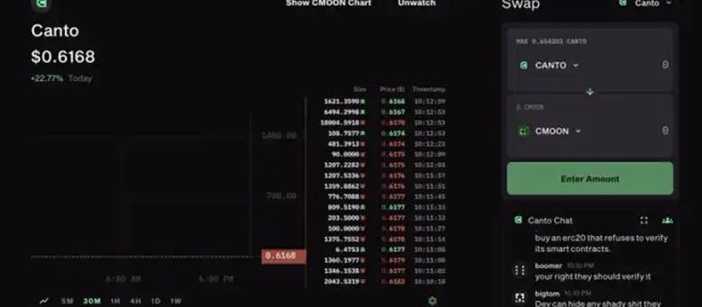 進入Canto后,你可以去http://app.slingshot.finance/swap/CANTO開始購買memecoin,如CMOON(JOJOANYONE?),甚至CINU(Cantoinu)。他們也有NFT!