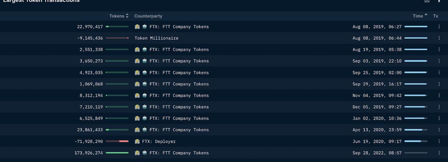 從2022年6月14日至11月7日,ETH百萬富翁將總計100萬FTT轉移到FTXAlameda錢包。