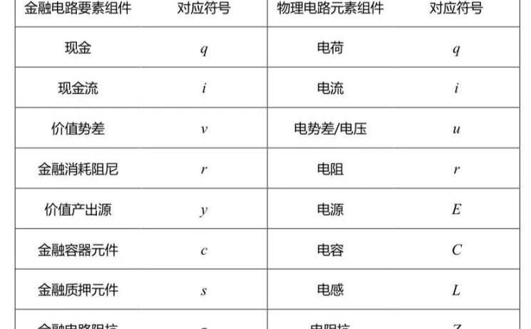 金融電路與物理電路的各項參數對比表