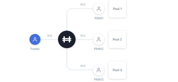 作為一個DEX,Hashflow并沒有使用AMM模型,Hashflow使用詢價方式的進行代幣交換,與訂單薄的方式非常相似。其具體機制為:交易者報價將A鏈的1個ETH兌換成B鏈的1000USDC,做市商將交易者在A鏈的1個ETH發送到A鏈上的流動性池,然后觸發B鏈的合約將1000USDC匯入交易者的B鏈錢包中。