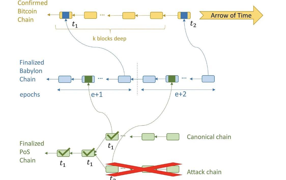 例如,完整的Babylon架構由三條區塊鏈組成:消費者PoS鏈、Babylon以及比特幣。