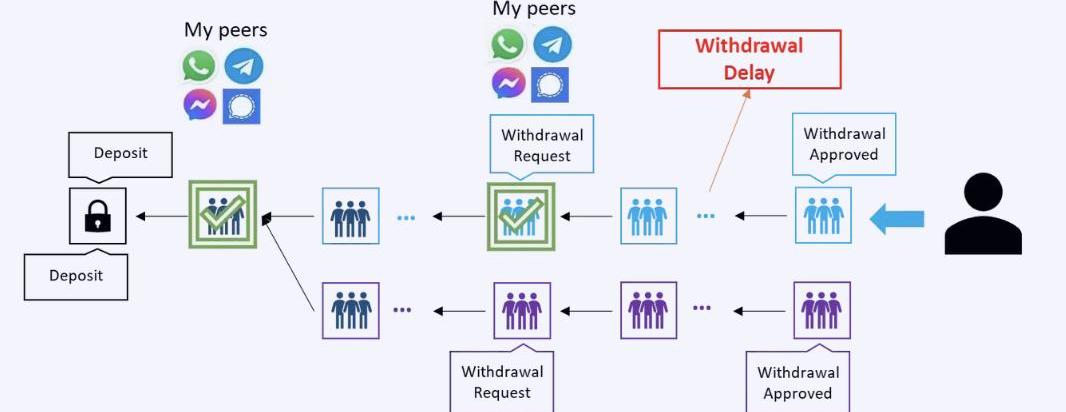 在社會共識方法的缺點中,最大的問題就是會引入令人沮喪的延遲:所有受信任的對等節點可能需要數天或數周才能就檢查點達成一致。這是由于協議過程的主觀和社會方面。例如,對等方可能通過Telegram進行通信,其中鏈上的協商將花費比共識協議的確認延遲更長的時間。這就是為什么圖4中規范鏈上的最后一個檢查點比鏈的頂端要老得多。