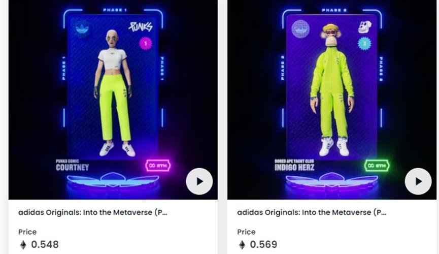當月,阿迪達斯就發售了「IntotheMetaverse」系列NFT,總量為3萬個,該NFT系列以IndigoHerz為人物形象,為它們配制了不同的服飾。