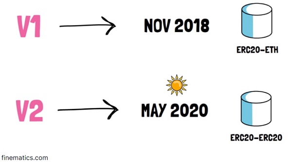 AMMs的引入來自于Uniswap,該協議允許在以太坊之上以無許可的方式列出交易對和進行代幣交易。最初在Uniswap V1中,池子是針對ETH創建的,所以所有的交換都是在結構為這樣的池子中進行的。ERC20/ETH。Uniswap V2于2020年5月亮相,允許為ERC20/ERC20代幣之間的交易建立池子,而不僅僅是ERC20/ETH對。今天的許多AMM都是Uniswap V2代碼庫的分支,在UI/UX和其他調整方面略有不同,例如SushiSwap實施的MasterChef獎勵合約。當提到V2 AMM、V2風格時,它只是指Uniswap所流行的恒定產品庫結構。