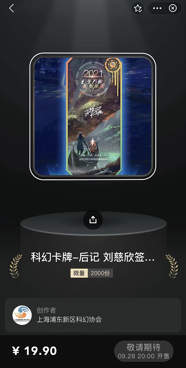科幻卡牌-后記 劉慈欣簽名版上架支付寶-螞蟻鏈粉絲粒