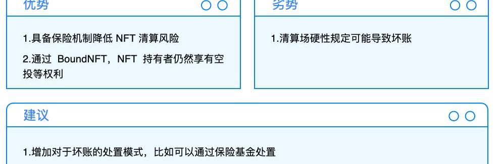 然而,這種模式會導致大部分鉆石手的NFT用戶不敢使用,縱然對沖掉了價格波動,但卻造成NFT的流失。在一般金融商品中便于在未來時間點內進行回補,但NFT的特殊性反而會造成應該行權但卻因為顧慮NFT流失的問題而不行權的狀態,反而有違項目設計本意。因此,使用情境上應該多為炒作的NFT,才有機會在這個市場中流通。