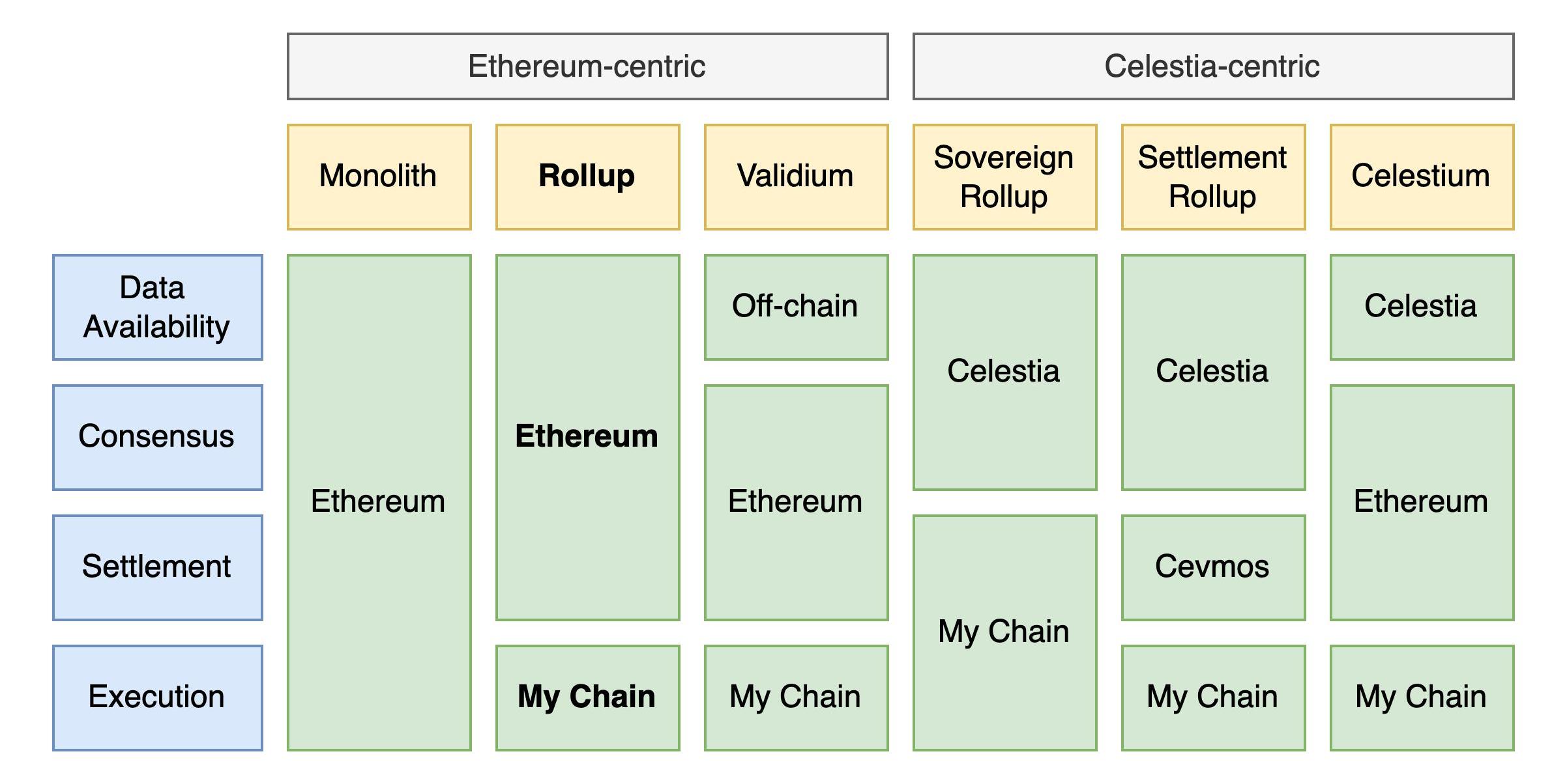 這不是對以太坊或Celestia的模塊化擴容方法的全面概述,但是把所有的東西都放在一張圖中確實對我有幫助。