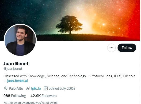 JuanBenet(胡安·貝內特)。胡安畢業于斯坦福大學的計算機科學專業,是協議實驗室的創始人兼首席執行官。胡安并不像中本聰,V神那樣被我們世人所熟知,但胡安未來的影響力很可能是與中本聰,V神是同一階梯的。