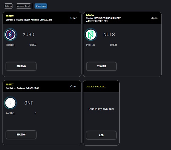Deri Finance:支持無許可上架標的,相對MCDEX操作要簡單許多,目前已經有用戶自主創建的3個池。池的流動性也并不很大。