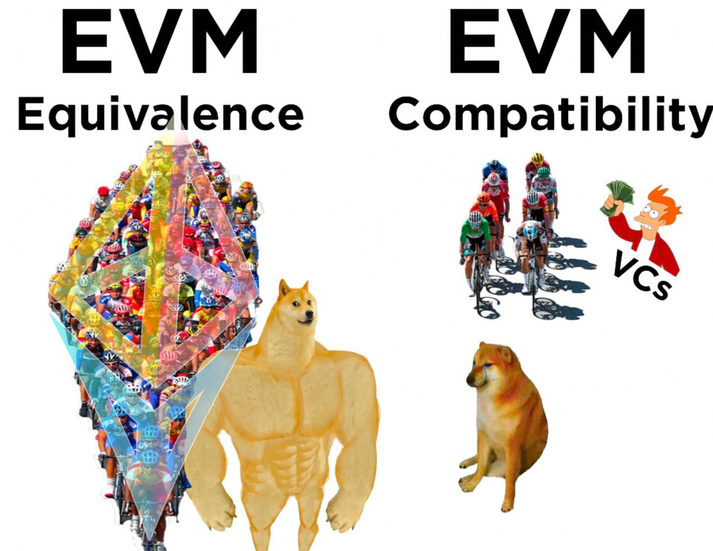 EVM等效是自下而上出現的類似城市的公共利益。另一方面,EVM的兼容性是一個一次性的復制。有無數種不同的方式可以偏離EVM,但只有一種方式可以遵循它。