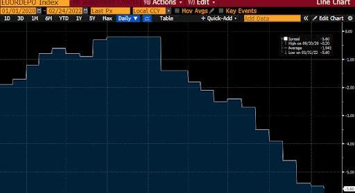 歐元區存款利率–歐元區CPI=歐元區實際利率
