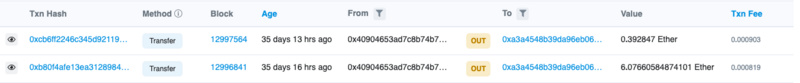 隨后,Nate 又分別以 0.4 - 0.65 ETH 不等的價格將所有“貨物”售出,繼而再分兩交易將全部所得(約 6.46 ETH)轉移回了主地址。