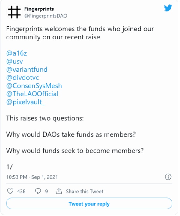 多個頂級風險投資基金已投資于這些 DAO,我認為它們最終將成為未來十年投資組合中表現最好的基金之一。