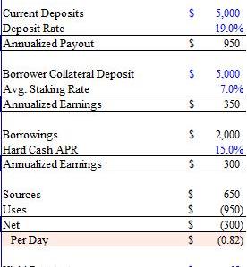 Anchor平臺用戶的儲蓄收益主要由兩部分構成,一是平臺向借款人收取的貸款利率,二是借款人存入的抵押品所產生的質押獎勵。在2021年的大部分時間里,Anchor平臺幾乎是在花錢讓用戶借出UST,這樣就會驅使借款人借出更多的UST,意味著更多的LUNA被銷毀,其價格也會得到相應提升。