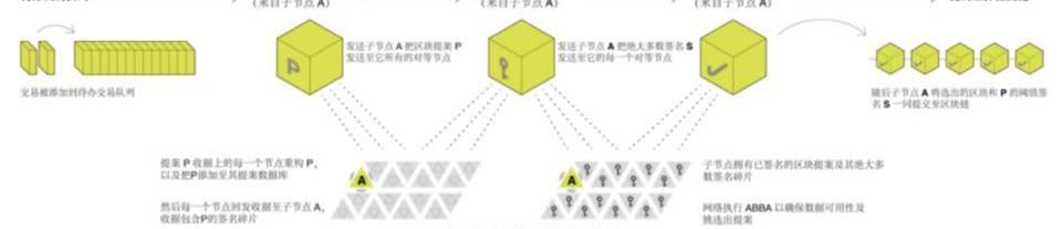 在某個虛擬子節點創建了區塊提案后,它將按照數據可用性協議通知其他的虛擬子節點。數據可用性協議保證了信息能夠傳遞至絕大多數的虛擬子節點。