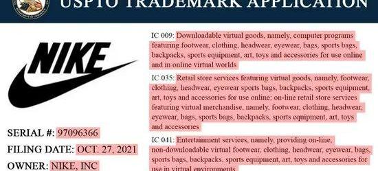 圖|耐克提交與“元宇宙”平臺相關的商標申請