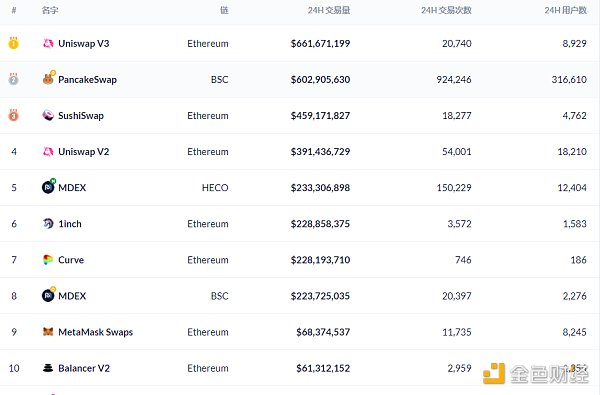 過去24小時去中心化交易所的交易量數據來源:Debank