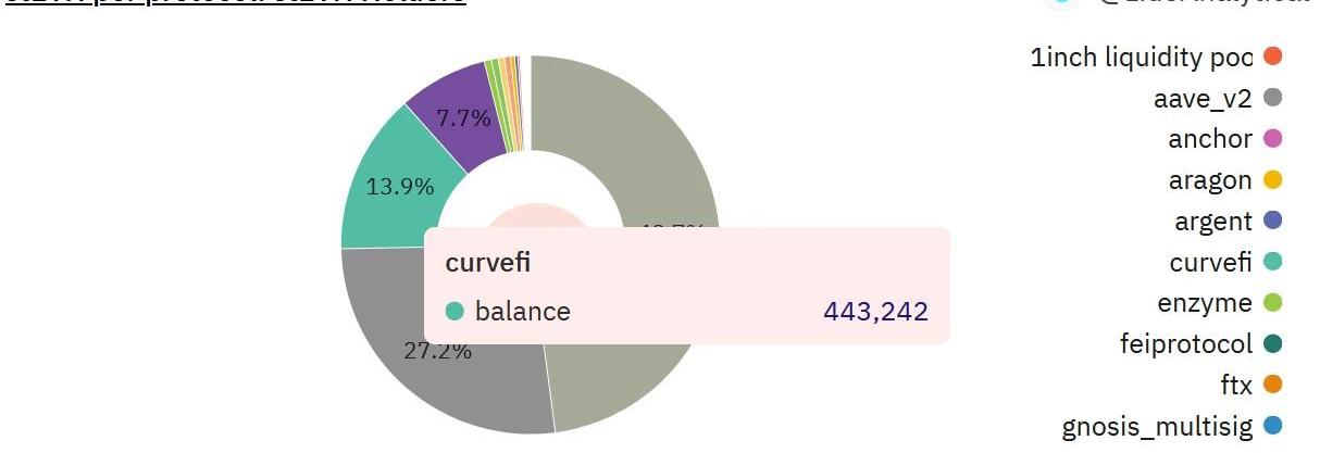 來源:https://dune.com/impossiblefinance/liquid-staking-derivatives其次,我們來看LSDLP代幣市場在以太坊的流動性質押賽道中,Lido的占比達到了73.4%左右。Lido的流動性質押衍生品中,有14%左右進入到了Curve中。