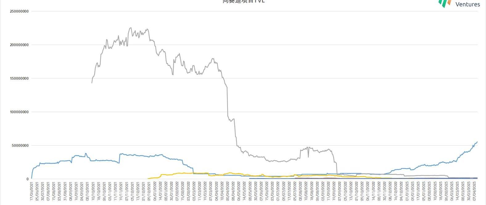 立足收益代幣化深耕固定收益市場的項目還有SwivelFinance、Delv、APwine和SenseFinance,從TVL、產品線2個簡單維度就可以看出相互之間的差異。3.7.1TVL在經歷了2022年的熊市之后,大量項目的TVL暴跌,Pendle所在的賽道也不例外。目前TVL在千萬級別的只有Pendle,Delv的TVL在百萬級別,其他3個項目的TVL已經在幾十萬美元甚至幾萬美元徘徊。