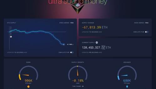 圖片來源于ultrasoundmoney根據ultrasoundmoney的數據,我們可以看出當前ETH的供應總量為120,453,327枚,并且以每年-0.108%的速度在通縮,長期來看ETH價格具備一直向上的基本面。