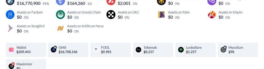 Arthur的大部分鏈上資金都在DeFi中,他持有的代幣只占他投資組合的一小部分,但讓我們來看看:-8萬美元的$ETH-4.8萬美元的$BOND-1.7萬美元的$PENDLE-1.4萬美元的$ARB深入調查他的DeFi交易,我們可以發現他似乎鐘愛GMX協議,將大部分資金質押在GMX中,并賺取收益:-質押1570萬美元的$GMX-質押100萬美元的$esGMX