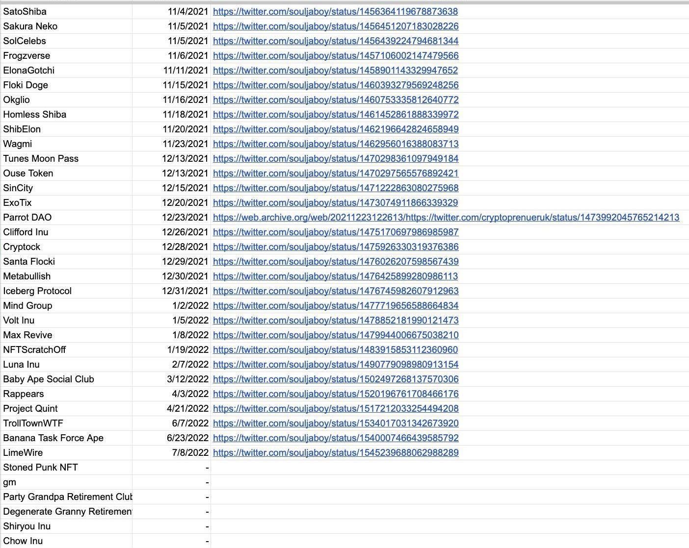 2021年7月19日,SouljaBoy在推特上寫道:“讓我們把RAPDOGE代幣推到000001美元,大家發動所有的朋友和我一起參與進來。”在LilYachty和Quavo的同樣鼓吹下,僅僅幾個小時后,項目方跑路了。